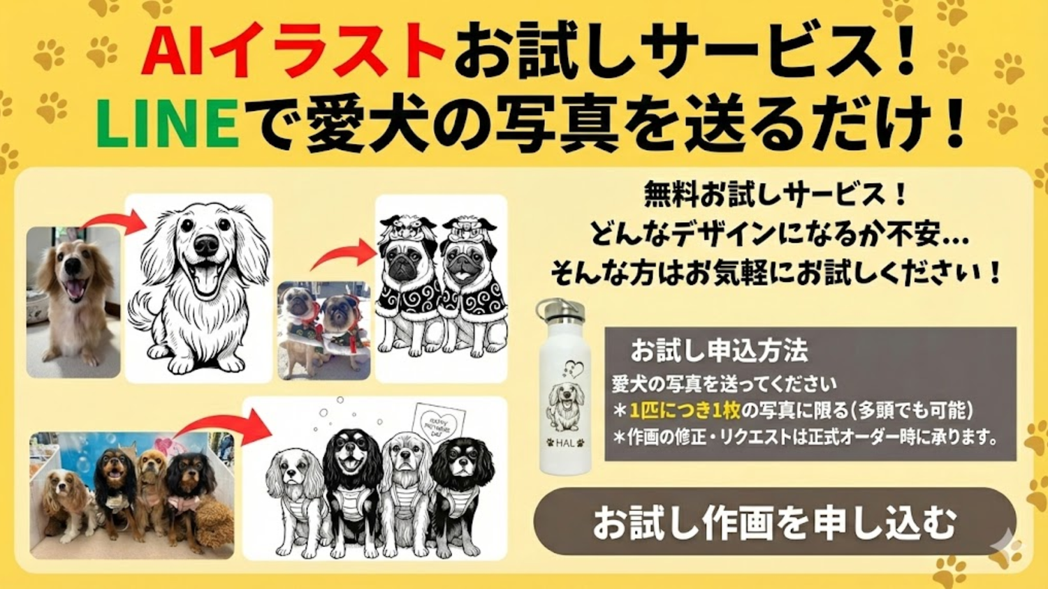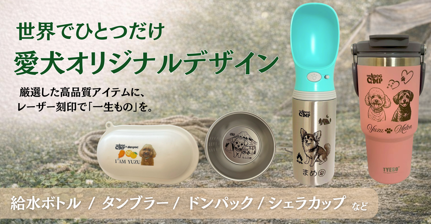 【夏の愛犬熱中症対策】 THEDOGCAMPおすすめ!真空断熱のステンレス給水ボトルで愛犬に1日中快適な水分補給を! 🐶 夏は愛犬にとって過酷な季節 真夏の外出は、人間でもバテてしまうほどの暑さ。犬は人間より暑さに弱く、熱中症のリスクが高い動物です。その理由は、汗をほとんどかけず、体温調節を「パンティング(ハアハア)」に頼っているからです。 💧 水分補給は「量」だけでなく「温度」も大事 犬が一度に飲める水の量は限られています。だからこそ、こまめに【冷たい水】を与えることが重要です。ぬるくなった水では飲みたがらない子も多く、熱中症リスクが上がってしまいます。 🌿 THE DOG CAMPおすすめの暑さ対策アイテム 数ある暑さ対策グッズの中から、THEDOGCAMPが自信を持っておすすめするのは「ステンレス給水ボトル(真空断熱版)」です。 🏕 真空断熱ステンレス給水ボトルの特長 長時間保冷:真空断熱構造で、夏の炎天下でも1日中冷たい水をキープ 結露しない:バッグや車内を濡らさず、持ち運び安心 水を戻せる構造:飲み残しをそのままボトルに戻せて衛生的&エコ ワンタッチ開閉:片手で操作でき、散歩やキャンプ中でもサッと給水可能 アウトドア映えするデザイン:シンプルで頑丈、キャンプサイトでも存在感バツグン 🎨 世界にひとつだけのオリジナルデザイン どうせ長く使うなら、愛犬のオリジナルデザインで作ってみませんか? AIでリーズナブルにオリジナルイラスト制作 制作前に無料お試し作画が可能 レーザー刻印だから、半永久的に柄が消えない 毎日使うアイテムだからこそ、世界にひとつだけの「愛犬ボトル」で暑さ対策をもっと楽しくしましょう。 💬 ご購入者様の声...