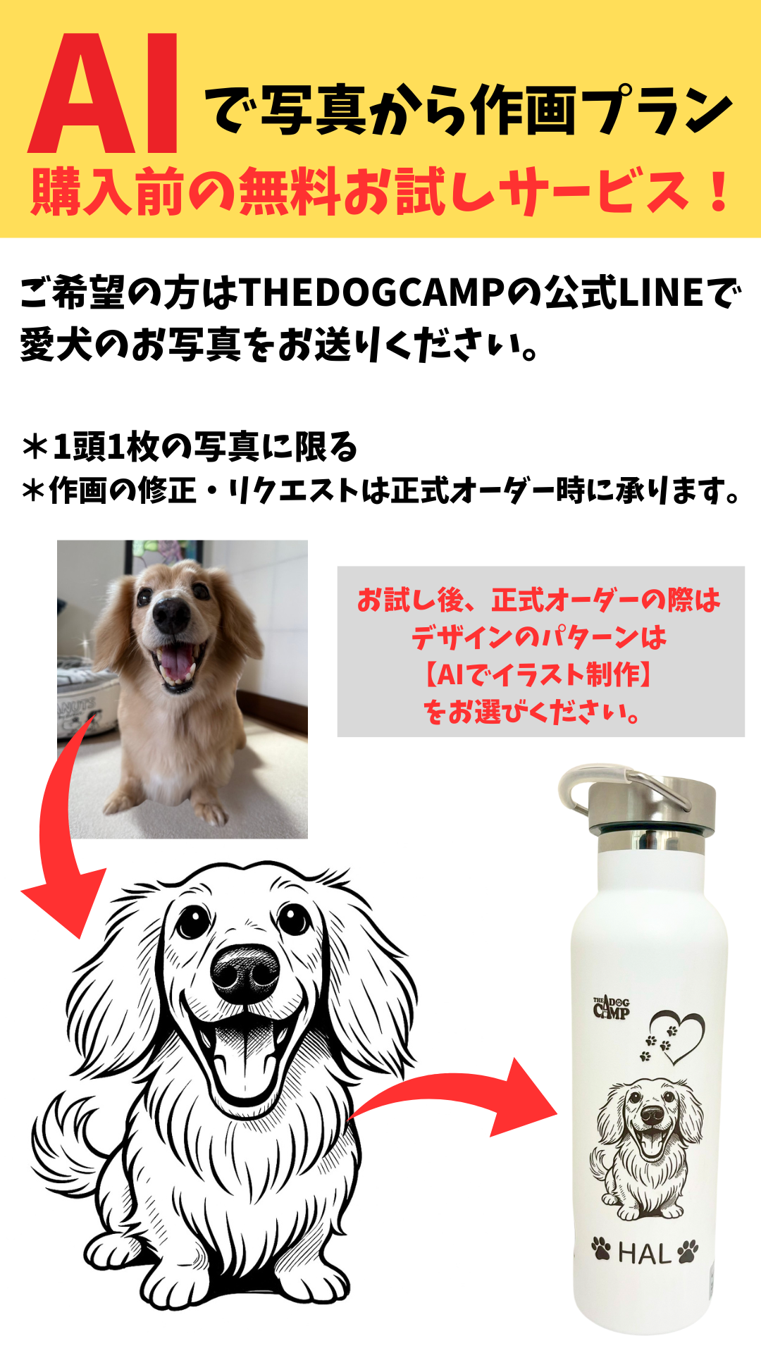 【AI作画】をご希望の方はTHEDOGCAMPの公式LINEで写真を1枚送ってください!