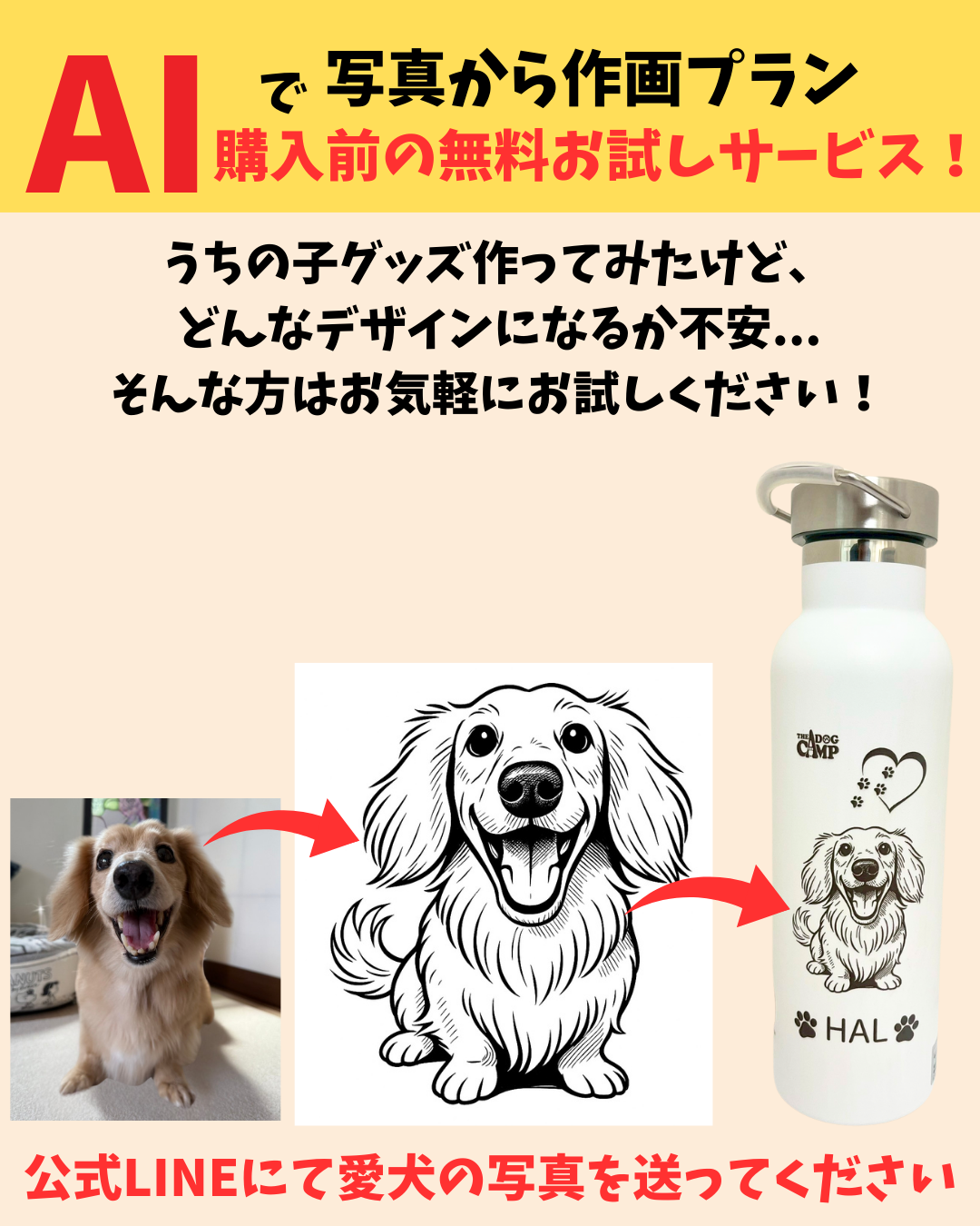 【AI作画】をご希望の方はTHEDOGCAMPの公式LINEで写真を1枚送ってください!